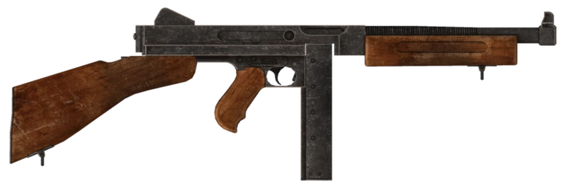 This picture taken from the ".45 Auto submachine gun" article on the Fallout Wiki at Fandom and is licensed under the Creative Commons Attribution-Share Alike License.