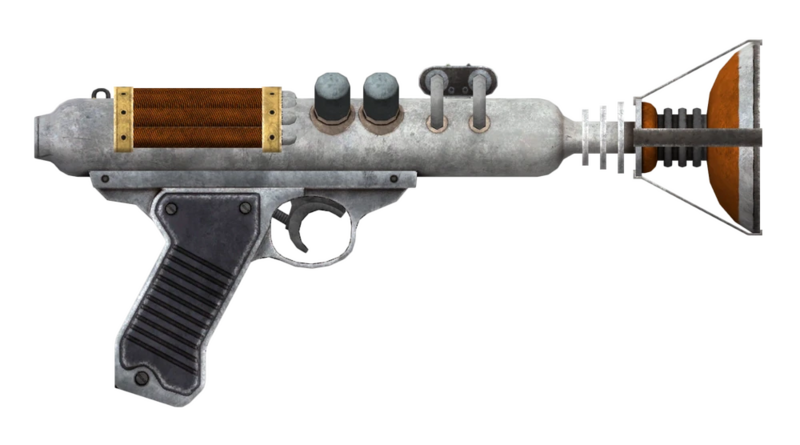 This picture taken from the "Pulse gun (Fallout: New Vegas)" article on the Fallout Wiki at Fandom and is licensed under the Creative Commons Attribution-Share Alike License.